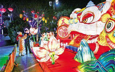 2月9日,人们在呼和浩特市塞上老街旅游休闲街区观赏花灯。春节临近,呼和浩特市大街小巷、公园、景区,设置了多彩花灯。造型各异的花灯、喜庆的红灯笼,处处洋溢着浓厚的节日氛围。记者 孟和朝鲁摄