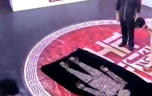 大哥小心翼翼地抬着那件金缕玉衣,走向鉴宝台。一进入台前,专家们顿时激动得不知所措,眼神中透露出对这件古物的浓烈兴趣,甚至有些哆嗦着声音,低声吐出了几个字。