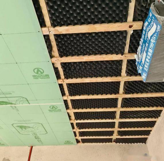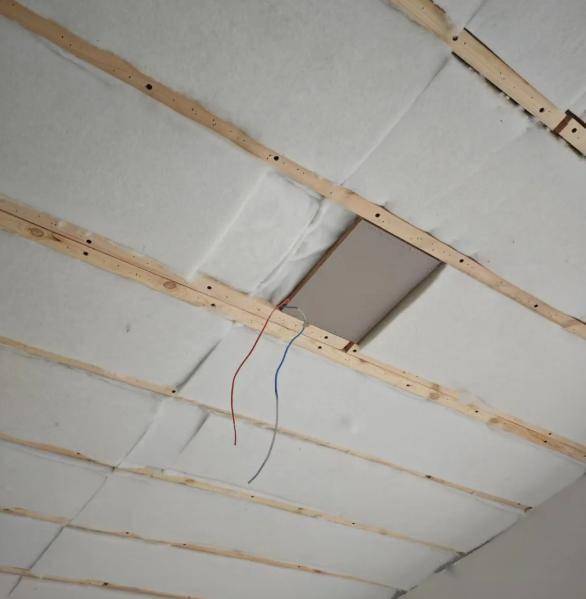 做法非常简单,只需要在天花板顶上铺一层隔音棉,再加上阻尼隔音毡,封上石膏板,就可以起到隔音的效果。