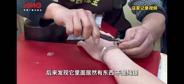 按照回收惯例,店员需先将银手镯剪开,检查是否有杂质并检测纯度,以此确定回收价格。可当手镯被剪开的刹那,在场所有人都大为震惊 —— 手镯内部并非纯银质地,反倒露出了一抹亮眼的黄色。