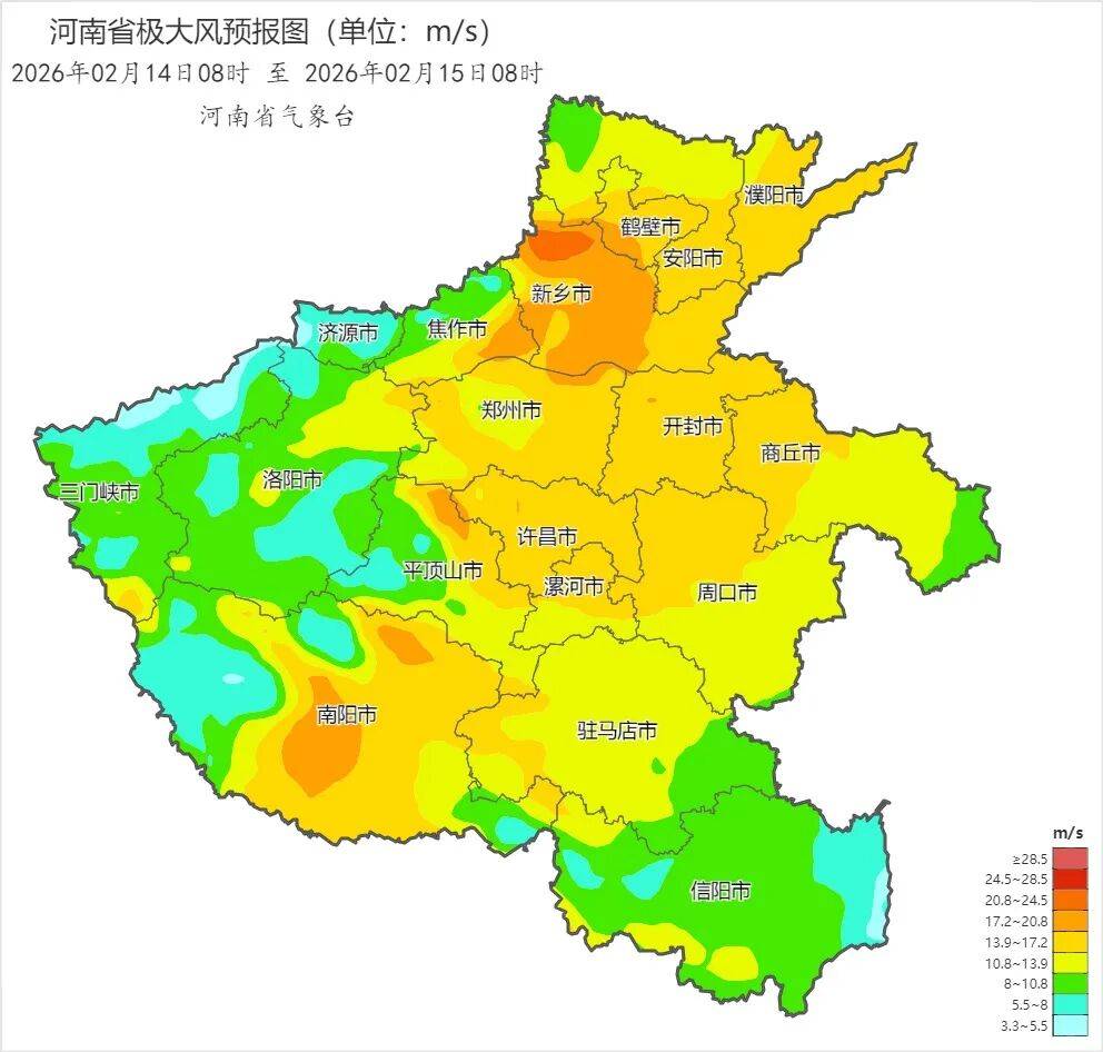 来源:河南省气象台2026年2月14日12时预报