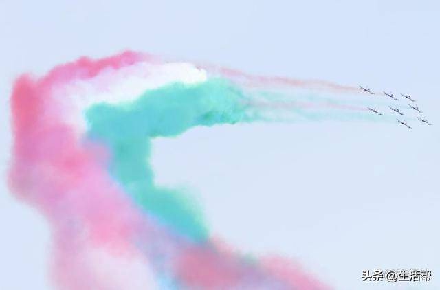 2月12日,意大利“三色箭”飞行表演队在高山滑雪女子超级大回转比赛后进行飞行表演。