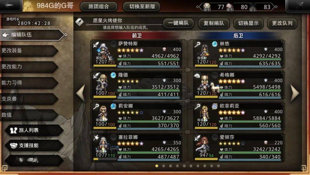 培养角色需要付出资源,大霸的角色强度在实装时就基本确定,后续变化不会特别大并且这类角色数量也不多,部分先出来的角色需要等后续某些角色到来后才能被充分激活,比如前面提到的画家和赛卢克,比如奥兹巴尔多和Ex莉妮特,比如凯妮和提齐亚诺。