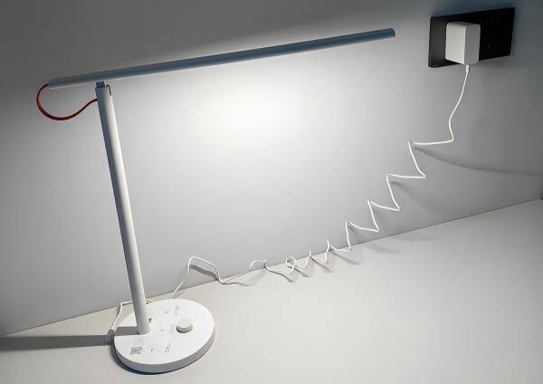 儿童护眼台灯哪个牌子最好最安全?米家1S护眼台灯在外观设计上颇具辨识度,在同类台灯中算得上是独树一帜。操作区域采用按键与旋钮相结合的设计,调节亮度或色温时只需轻轻旋转即可完成,整体操作体验流畅而直观。结构方面灯臂采用高强度尼绳连接,在保证调节灵活性的同时,也显著提升了使用过程中的稳定性。发光面则采用矩阵式全光谱灯珠布局,有助于提升光线的自然度和均匀性。不过由于发光面积相对有限,在最高亮度下,其照度仅能达到国A级照明标准,尚未达到国AA 级的水平。因此更适合日常轻度阅读或办公使用,而对于高强度学习场景,照明能力略显保守。
