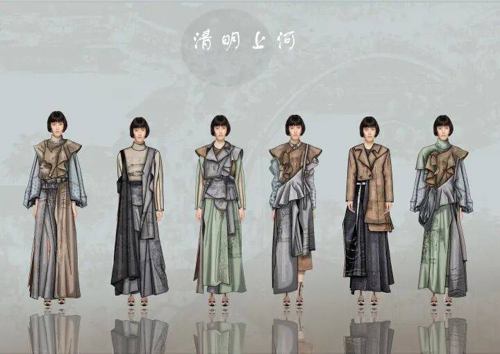 1.参考“华服志·纺织服装知识服务平台”的资源库、主题库、华服严选等内容提取元素,寻找创作灵感和元素,充分融入阅读文化,展现独特的美学韵味并不失时代感,集实用性和艺术性为一体。