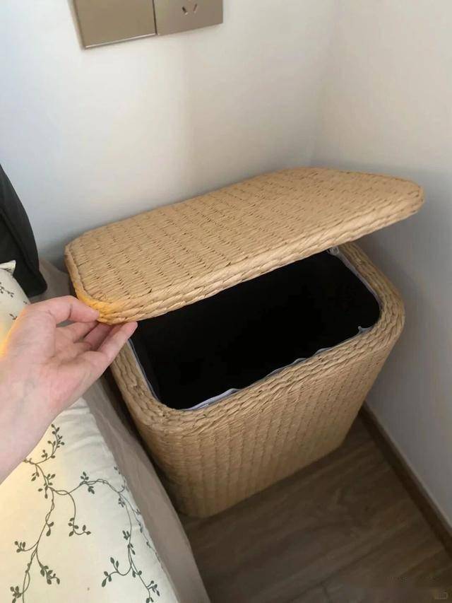 你打开盖子,里面还具有一定的收纳功能,换下来的睡衣也可以扔在里面。