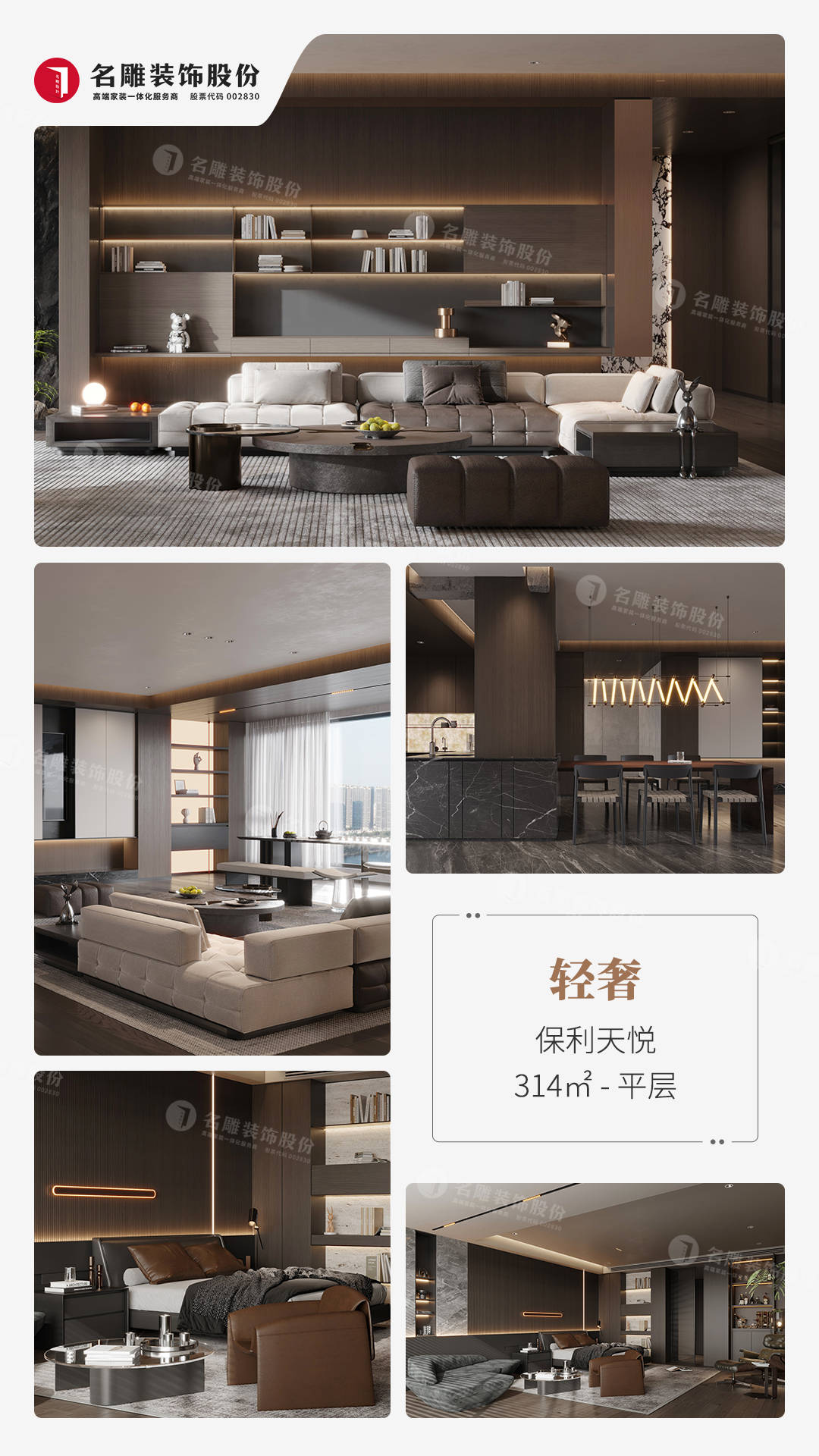 名雕装饰以多品牌矩阵适配不同客群与空间需求,精准覆盖从家装到公装、从刚需到全细分市场。旗下的名雕家装聚焦中大户型住宅,提供设计、施工、材料、软装等一体化装饰服务,积累了大量经典案例,收获了 90000 + 家庭的口碑认可;丹迪别墅装饰专攻别墅、私人会所等鼎级空间,独创别墅装饰 七大系统,为客户量身打造专属方案;佰恩邦整装面向中产群体,主打高性价比全屋定制家装,承诺整装项目内 0 增项,还保障环保达标;名雕盛邦精公装聚焦商业空间,为中小型高级公装项目提供一体化装饰服务。