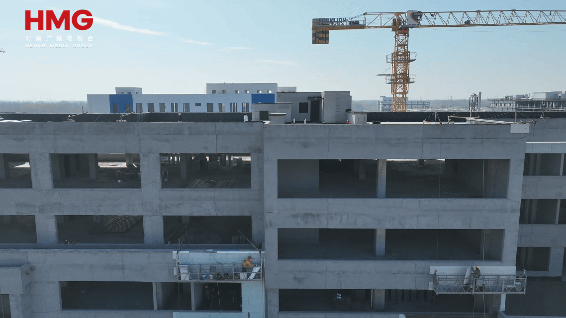 “目前咱7栋厂房的主体施工已经完成,一部分设备正在安装,为了确保今年春节前试生产,所有的工人正在加班加点的施工。”河南安捷伦新材料科技有限公司项目主管许江涛告诉记者。