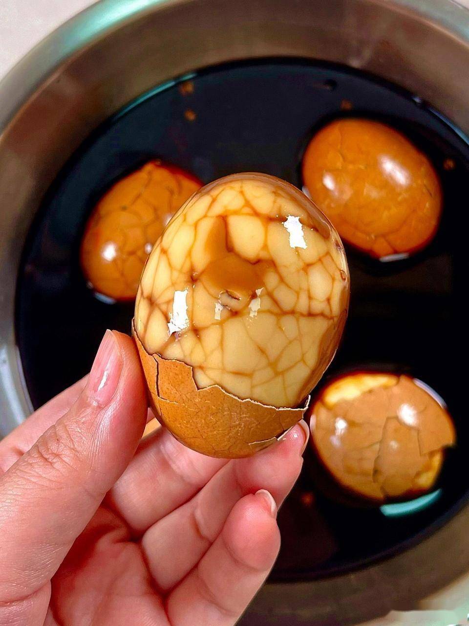 1、准备适量的鸡蛋,冷水下锅,水开煮10分钟捞出,再敲碎蛋壳,从新放入锅中。