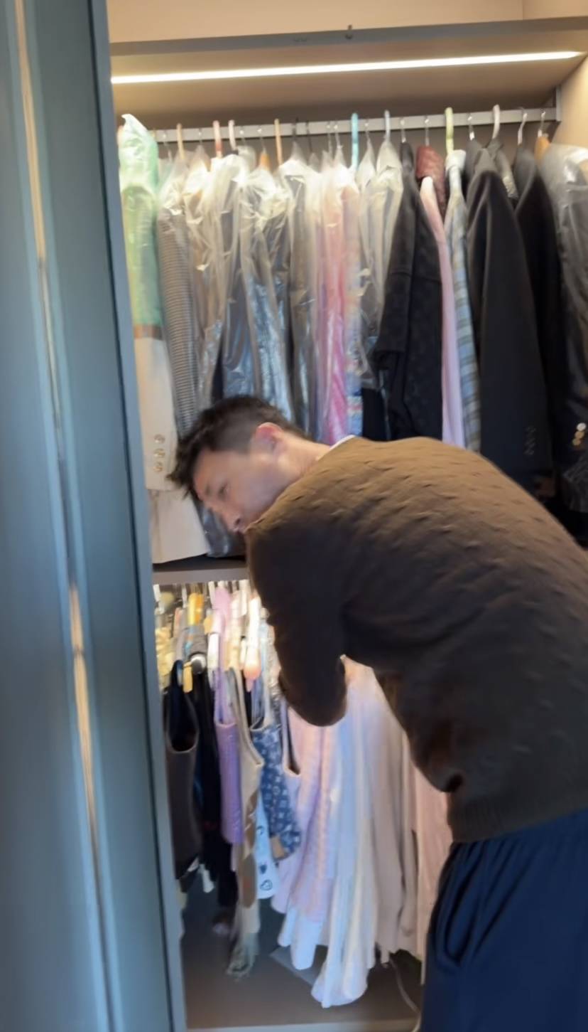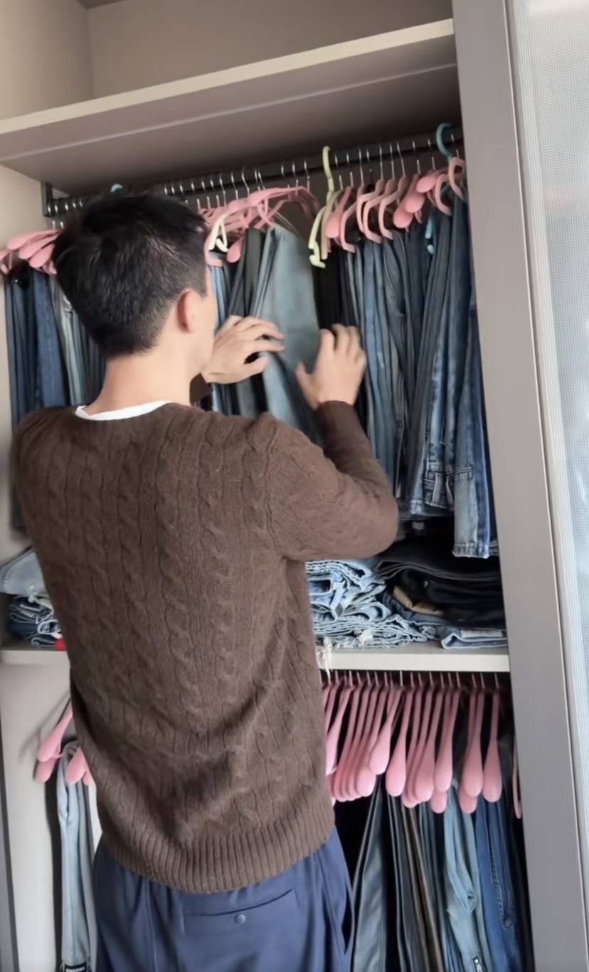 杜淳也是非常听老婆的话,打开衣帽间就给王灿找牛仔裤。不看不知道、一看吓一跳。王灿的衣帽间也太强大了,牛仔裤都是单独放在一个衣橱里的。