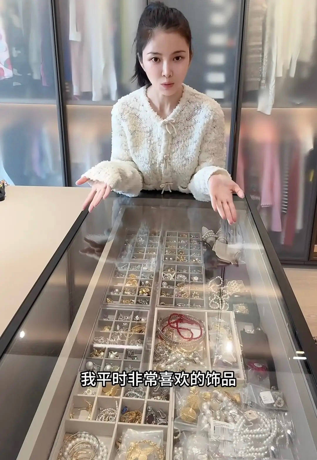 这一桌子的首饰,就像是商场里的柜台一样。里面有各种耳环、项链、手镯,日常搭配一目了然,收纳也很方便。王灿真是太聪明了,这样收纳首饰好实用。