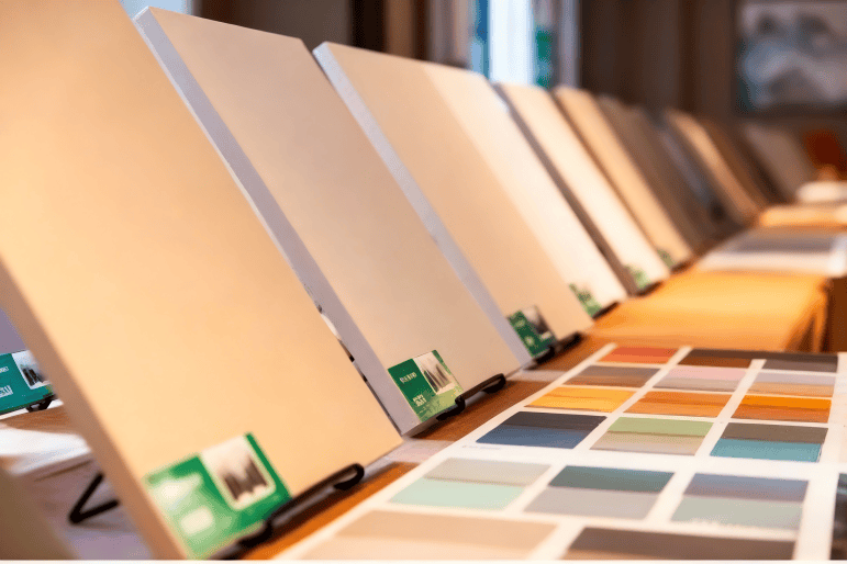 千山板材严守匠心工艺,引进世界一流生产设备,上线高端印刷设备陕西北人、国内领先浸渍设备益维高,与世界领先压贴设备品牌温康纳开启战略合作,确保千山板材的高品质输出。