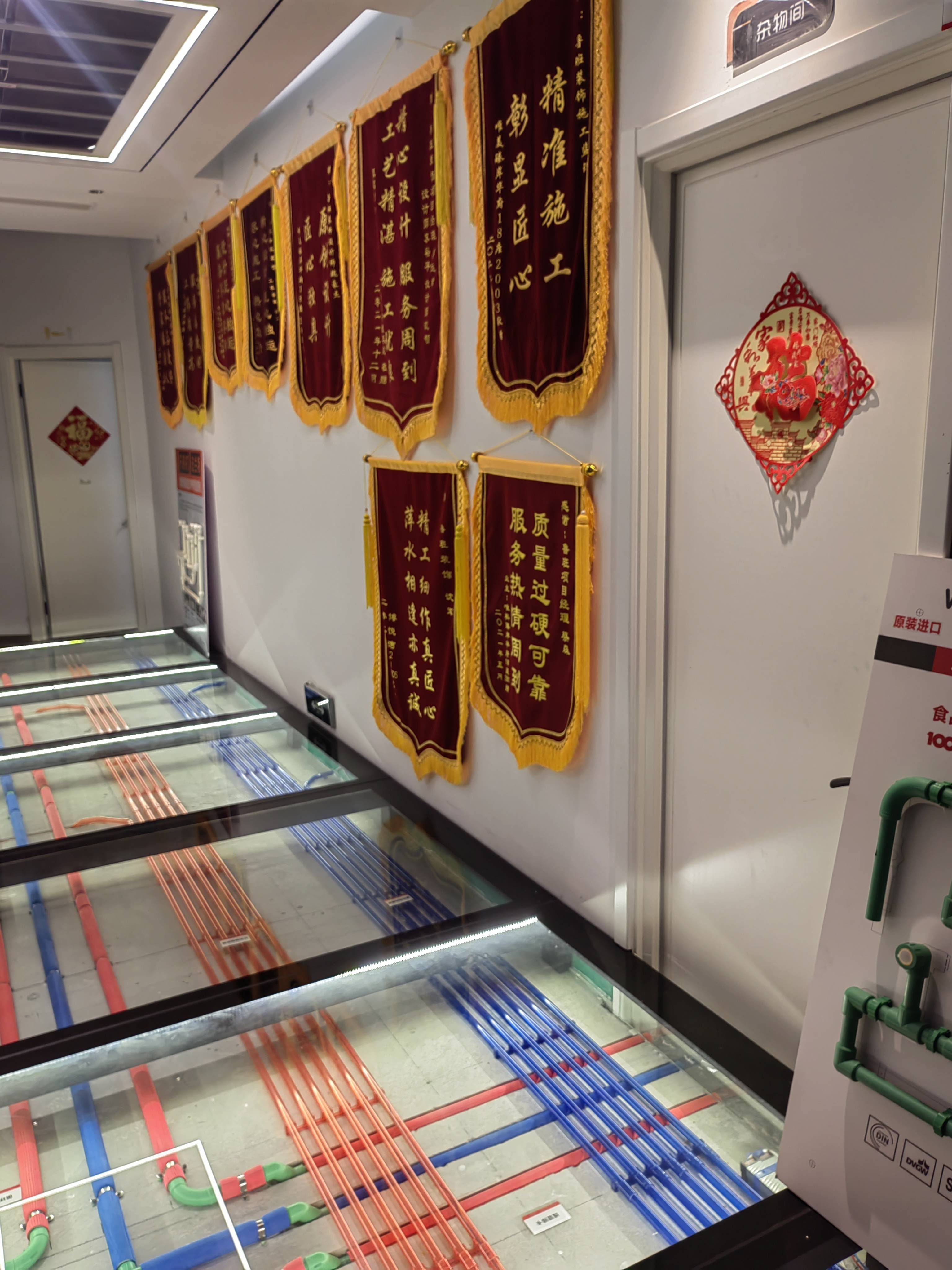 公司的环保标准也非常高,使用的木门、全屋定制都是环保级别ENF的,油漆是儿童系列的,水管、线管是德国进口的食品级原材料,天花吊顶是轻钢龙骨,瓷砖、卫浴均是精品,让客户住得安心。
