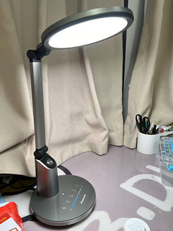 哪个品牌的护眼台灯性价比高?松下致巡这款护眼台灯依旧延续了品牌一贯的极简风格,外观干净利落,不论放在书桌还是卧室都显得很协调。灯体做工扎实,采用铝合金与ABS复合材质,手感细腻、质感在线。灯臂部分使用三段式转轴结构,调节角度最高可达120°,无论是抬高还是压低灯臂,操作都顺畅轻盈,阻尼感刚好。发光面直径约20.3cm,属于比较宽的照明范围,最高亮度下能轻松覆盖约1.8米的桌面区域,整体表现稳中带劲,实用性强。