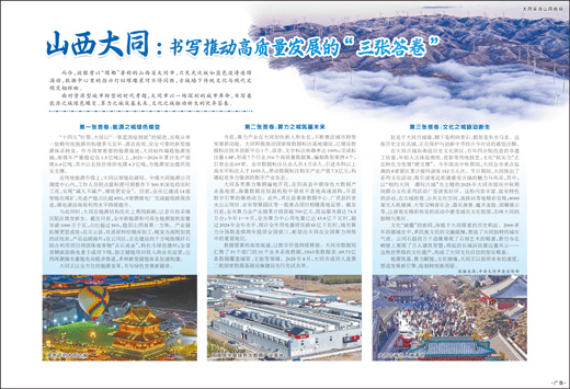 近日,《人民日报》以《山西大同:书写推动高质量发展的“三张答卷”》为题,聚焦大同转型发展实践,报道了这座千年古都如何破解资源型城市发展难题,以一场深刻城市革命,在能源蝶变、算力崛起、文化新生三个维度交出优异答卷,为全国同类城市转型提供探索经验。