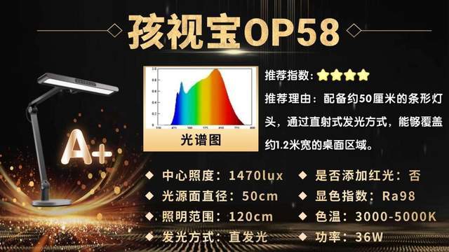 哪种牌子台灯对眼睛好一点?孩视宝OP58护眼台灯采用铝合金与ABS塑料结合的材质,结构比较稳固,底座放置平稳。它配备约50厘米的条形灯头,通过直射式发光方式,能够覆盖约1.2米宽的桌面区域,适合多人共用或需要较大照明范围的场景。光线分布相对均匀,能满足阅读和书写的基本需求。不过由于采用直射光源,如果在使用中角度调整不当,直视灯头时可能会感到刺眼,需要注意调节合适的照明角度。