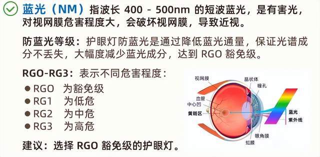 蓝光中的短波段具有较强的穿透力,可直接抵达视网膜,引发不可逆的损伤,例如黄斑病变、白内障等。更重要的是,这部分蓝光会抑制褪黑激素分泌,干扰睡眠节律。因此,选灯时务必要确认产品达到RG0豁免级,这意味着蓝光危害处于最低等级,孩子长时间使用也更安全。