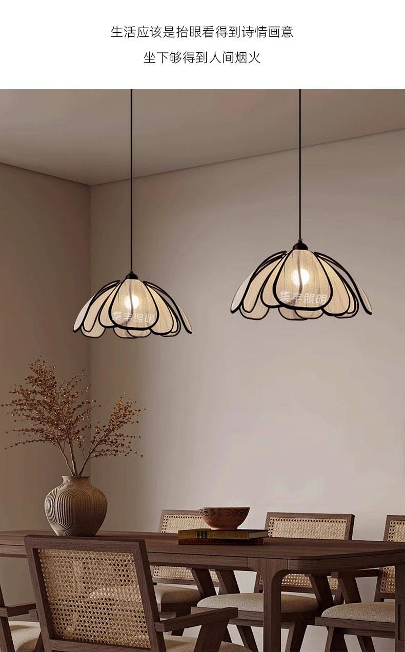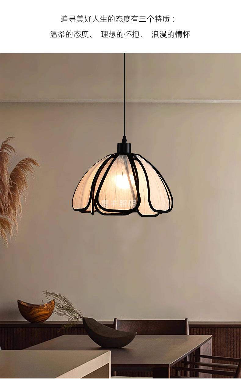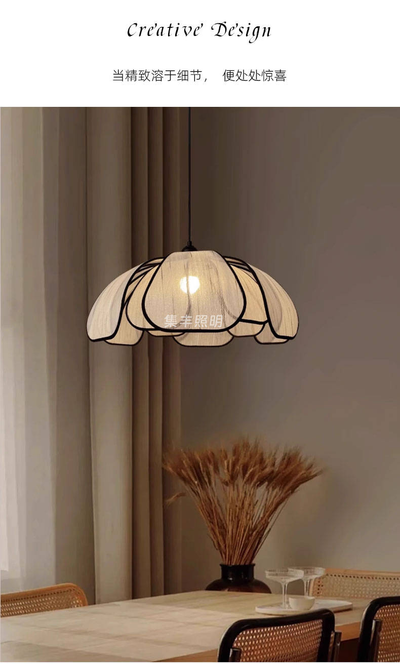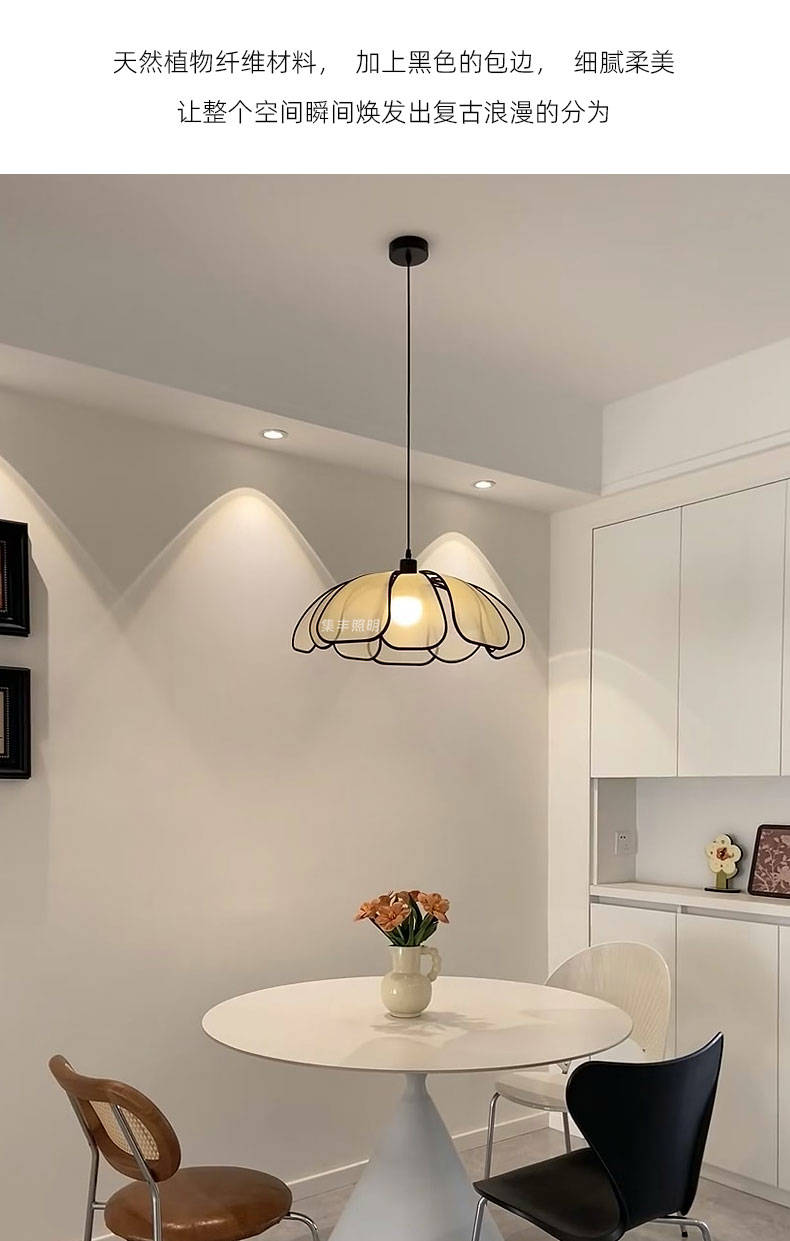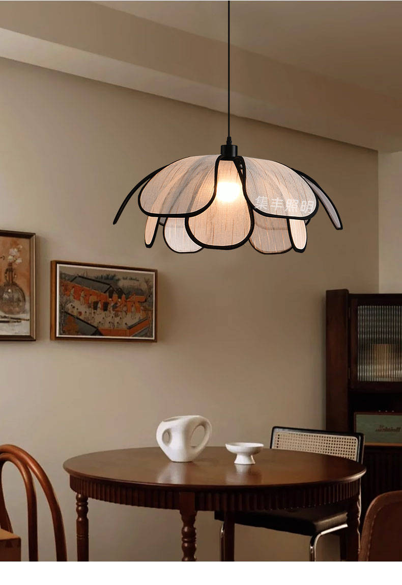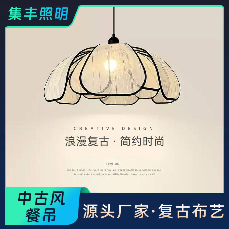 集丰照明丨中古风卧室床头小吊灯,浪漫复古布艺餐厅创意餐花瓣吊灯