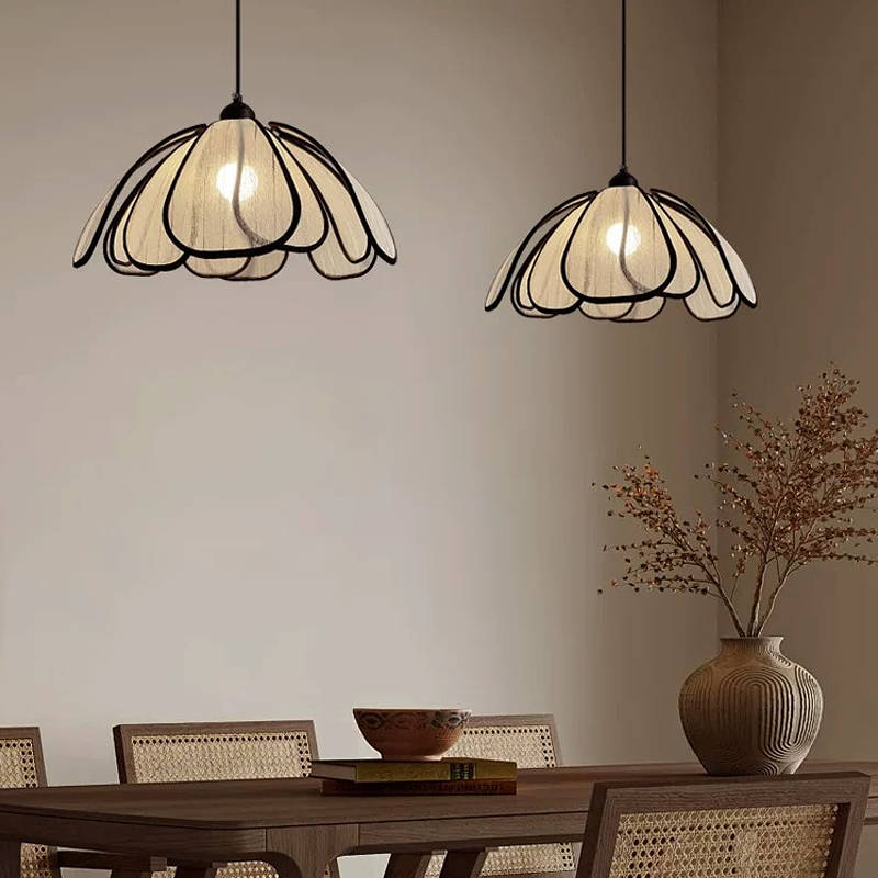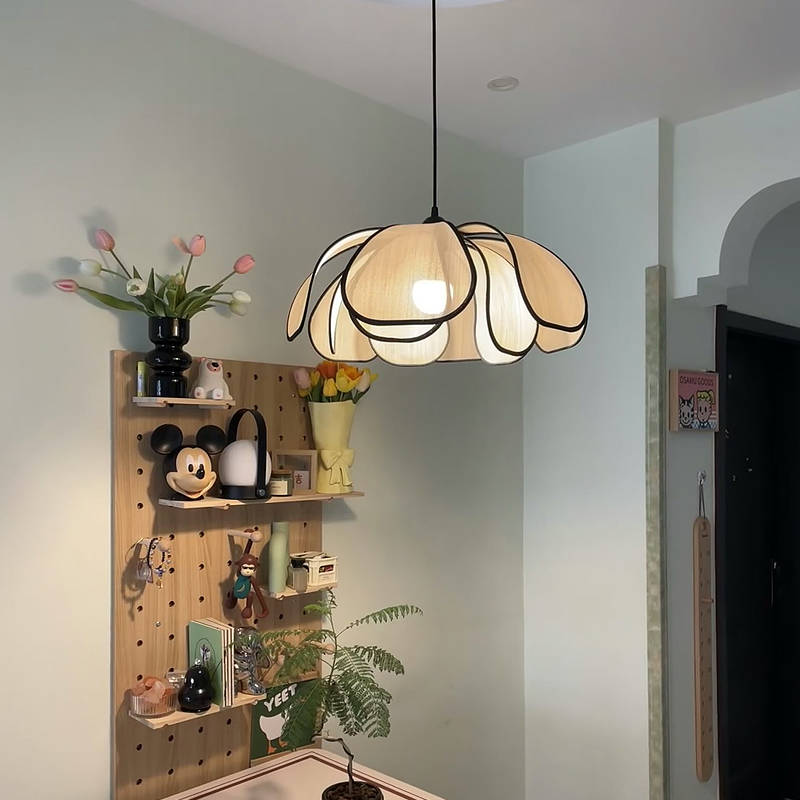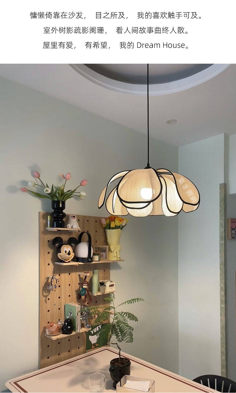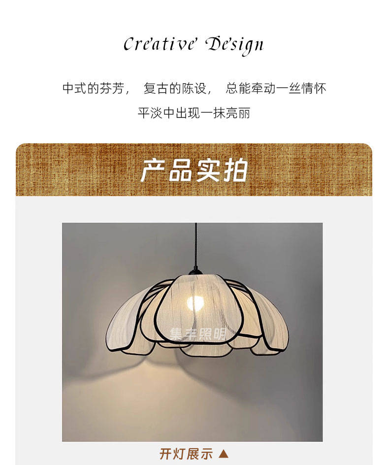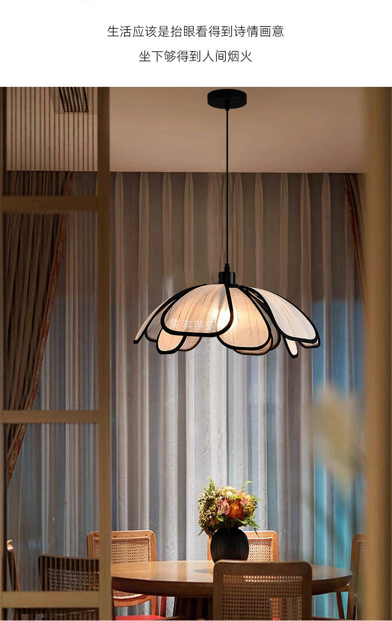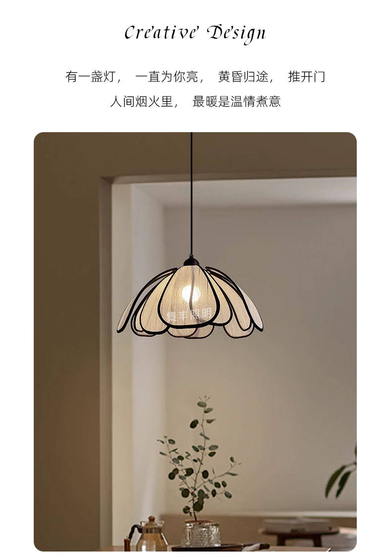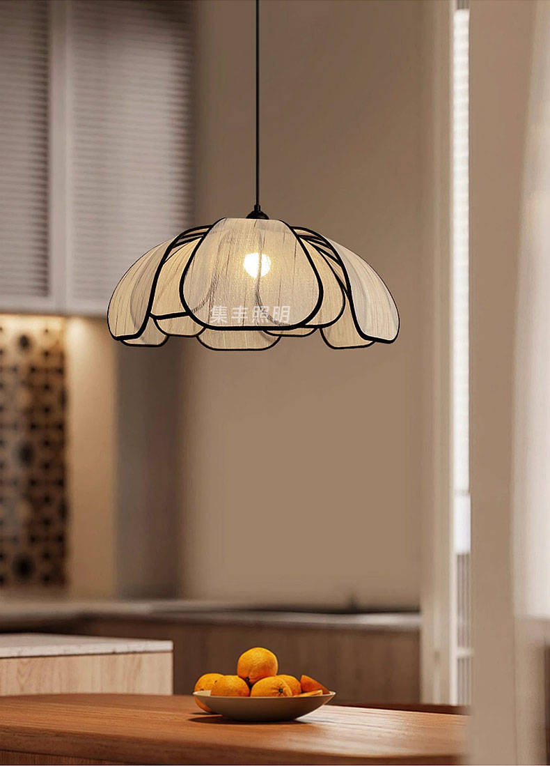 集丰照明丨中古风卧室床头小吊灯,浪漫复古布艺餐厅创意餐花瓣吊灯