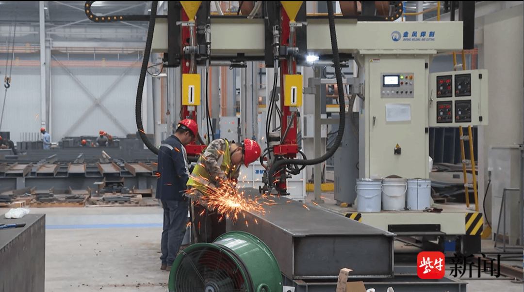 11月27日上午9点,盐城市射阳县海河镇开继重工(江苏)有限公司生产车间内机器轰鸣、焊花飞溅。外场成品库区,3辆大型货车有序排列,2辆叉车穿梭往返,将刚刚下线的金属结构件产品运装上车……这家今年7月才投产的企业,凭借领先的工艺技能与过硬的产品质量,迅速打开市场、站稳脚跟。截至目前,已生产钢结构8000多吨,预计年底产值可达1.5亿元,产量突破1万吨。当前订单充裕,生产计划已排至明年4月。