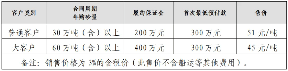 客户需通过线上或线下与赣昌公司协商,填写购砂意向单后,将履约保证金及预付款汇入赣昌公司指定账户,方视为报名成功。汇款起始时间为2025年12月4日上午9:00,截止时间由赣昌公司另行通知。收款账户信息如下: