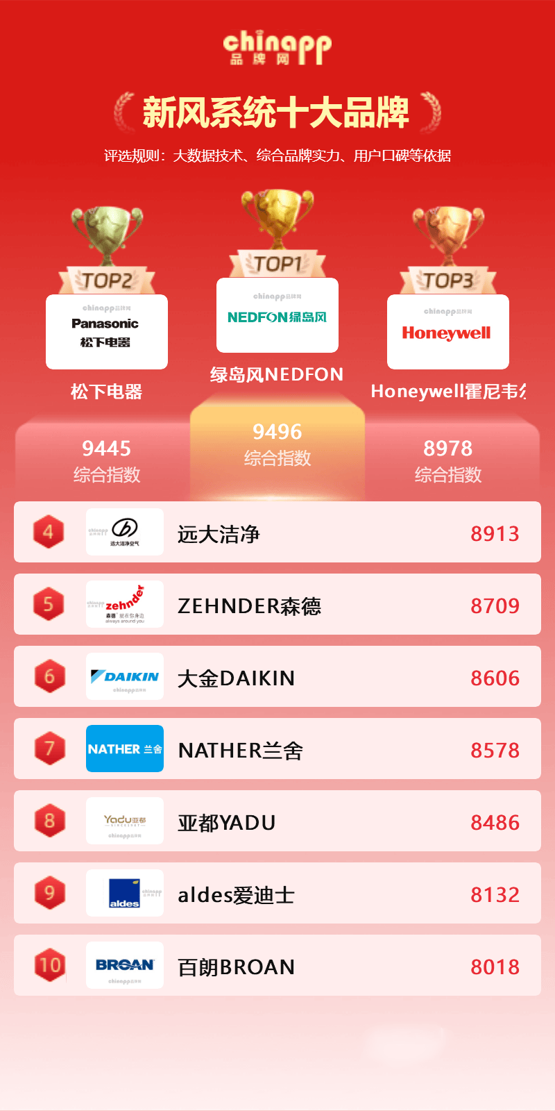 近日,品牌网chinapp综合品牌实力、市场占有率、用户口碑评价、技术创新能力及售后服务体系等多个维度,发布了最新的《新风系统十大品牌排行榜》。以下是上榜前十名品牌的详细介绍。