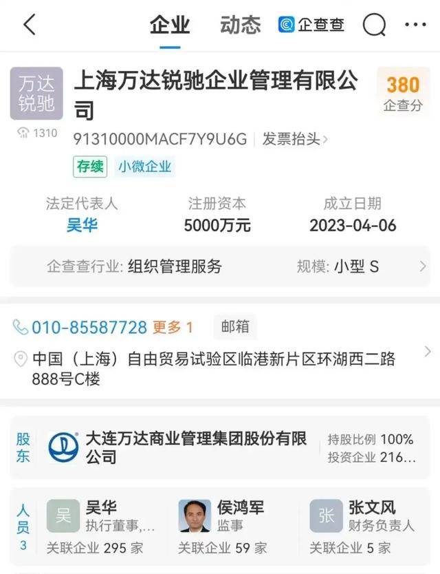 上海万达锐驰企业管理有限公司成立于2023年,由万达商管100%持股,注册资本5000万元,此次股权收购构成万达体系内的资产回流。针对赎回的具体原因、交易对价等细节,万达集团相关人士回应称“没有可以回复的内容”。