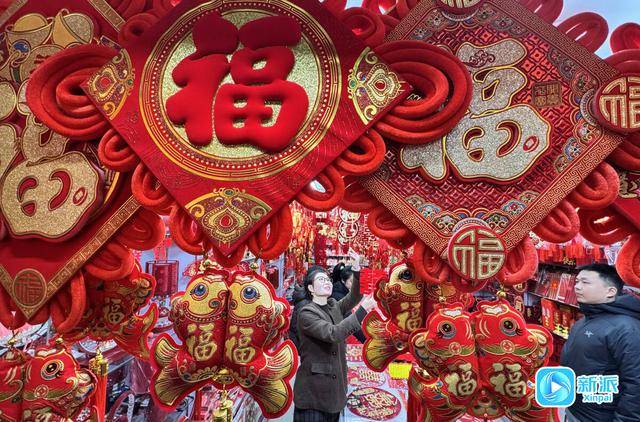 新派讯12月3日,在潍坊商品城,市民正在选购新年饰品。随着新年临近,市场迎来新年饰品的销售旺季,各种喜庆、吉祥的新年饰品琳琅满目,现场处处洋溢着欢乐喜庆的氛围。