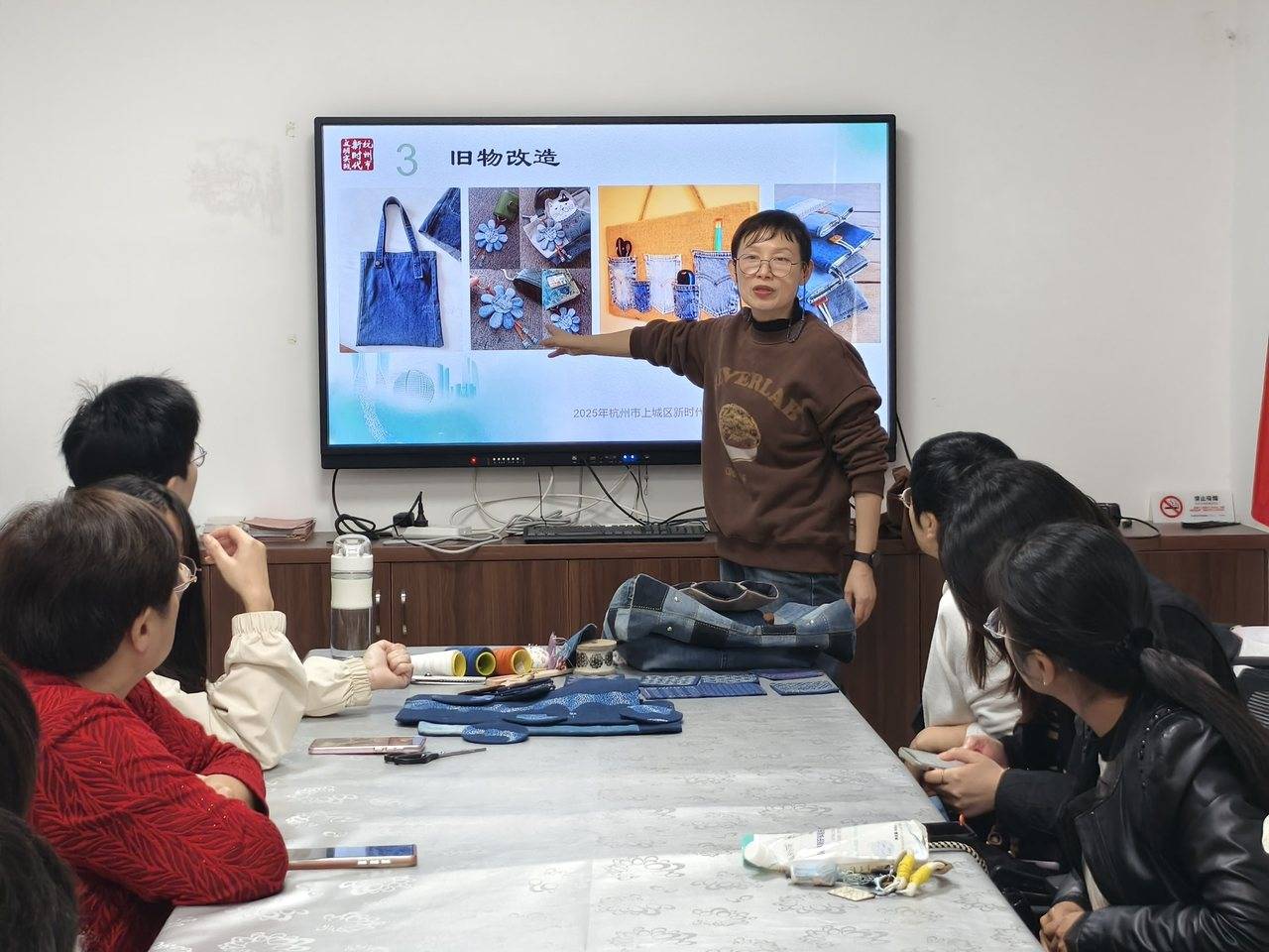 活动当天,该社区活动室内欢声笑语不断。包郓老师作为特邀讲师,以生动有趣的方式向大家介绍了布艺手工的独特魅力及其背后的环保主旨。她强调,通过废旧布料的再利用,不仅能够减少垃圾的产生,还能创造出独一无二的艺术品,为生活增添一抹亮色。