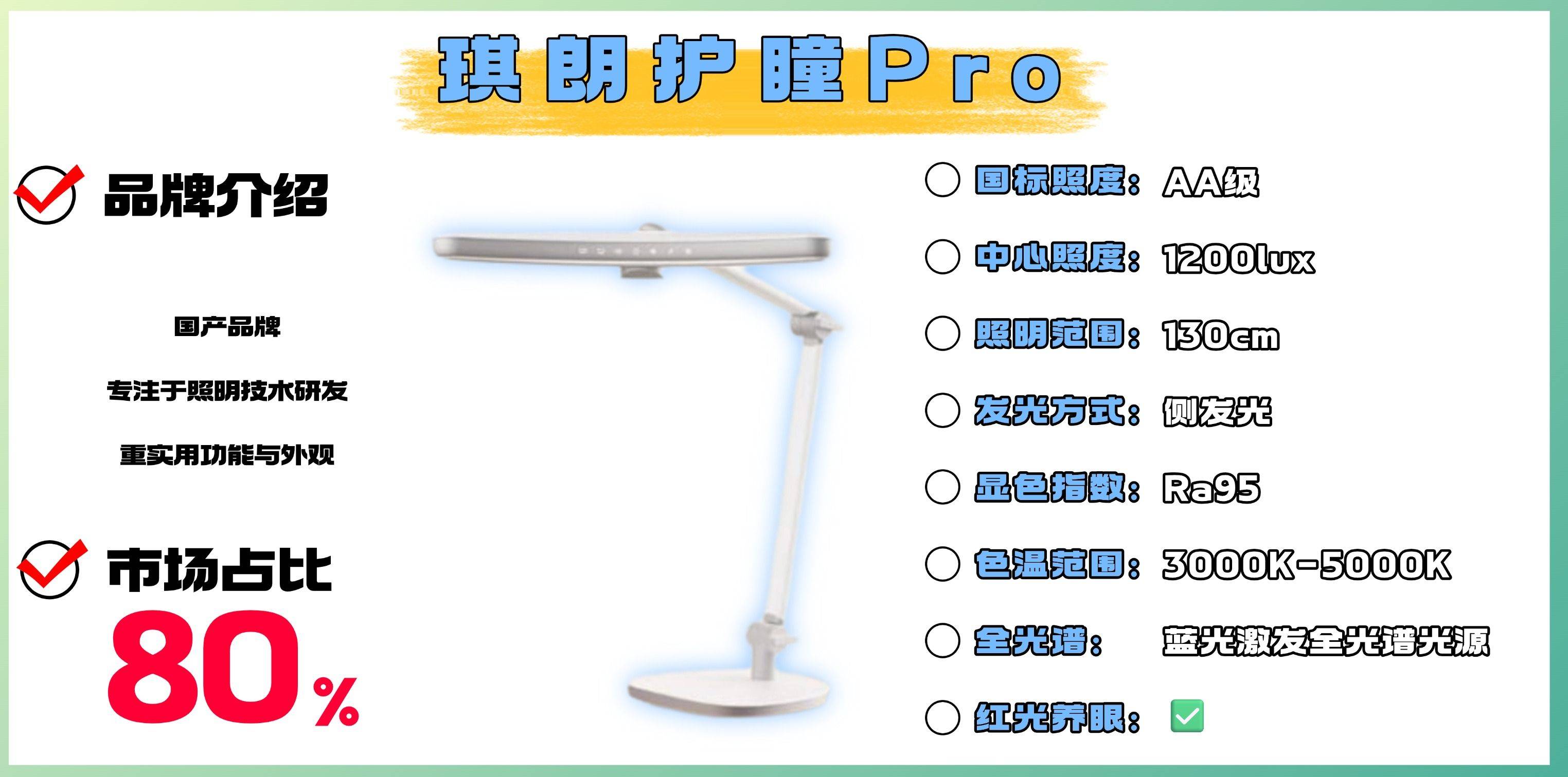 品牌介绍:琪朗是国内照明行业的品牌之一,知名度一般。其护眼灯系列主打实用与美观兼顾,适合日常学习与家用场景。