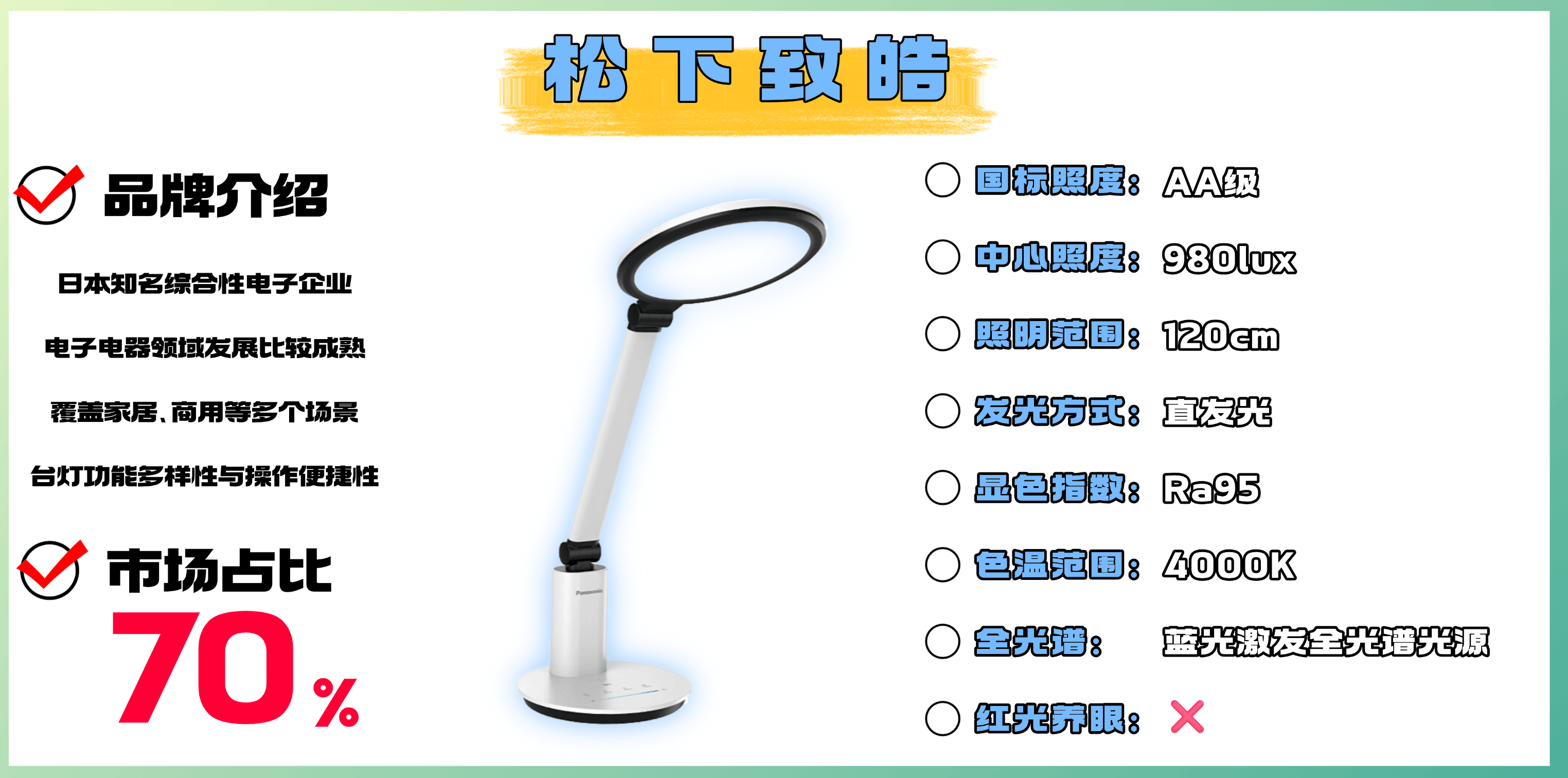 品牌介绍:松下是日本知名综合性电子企业,其照明产品覆盖家居、商用等多个场景。