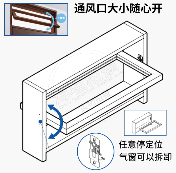 任意停功能是提升气窗使用体验的关键,完美契合通风需求的多样性。传统气窗铰链仅能在固定角度开启,无法根据通风需求灵活调节,而这款铰链通过内置精密阻尼机构,可实现气窗在0-90度范围内任意角度的稳定停留。在工业车间,操作人员可根据室内温度调节气窗开启角度,控制通风量;在民用建筑中,夜间通风时可将气窗开启至较小角度,既保证空气流通又兼顾防盗安全;在设备机房,可通过精准定位让气窗与散热口形成最佳通风路径,提升设备散热效率。
