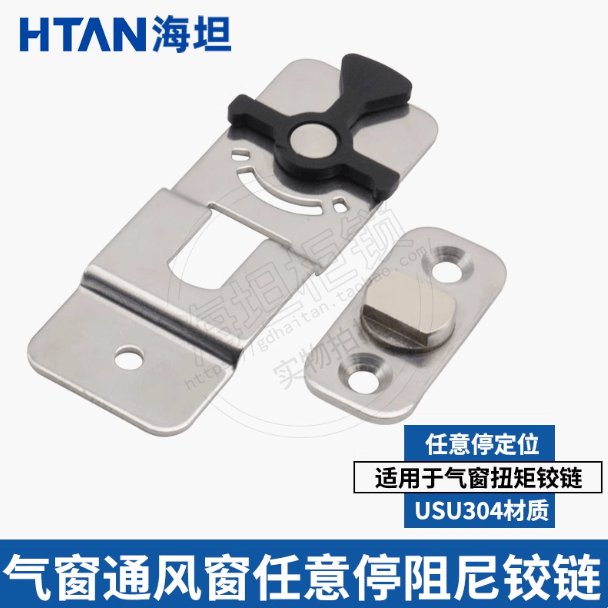 固定支臂的协同设计进一步强化了结构稳定性。支臂采用与主体相同的304不锈钢材质,一端固定于窗框,另一端与铰链主体连接,形成三角形支撑结构。这种结构能将窗扇的重量与受力均匀分散到窗框整体,避免铰链单点受力过大导致的损坏。在气窗开启至最大角度时,固定支臂可辅助承受拉力,配合扭矩铰链的定位功能,形成双重稳固保障,尤其适合大型气窗或户外易受风力影响的场景。