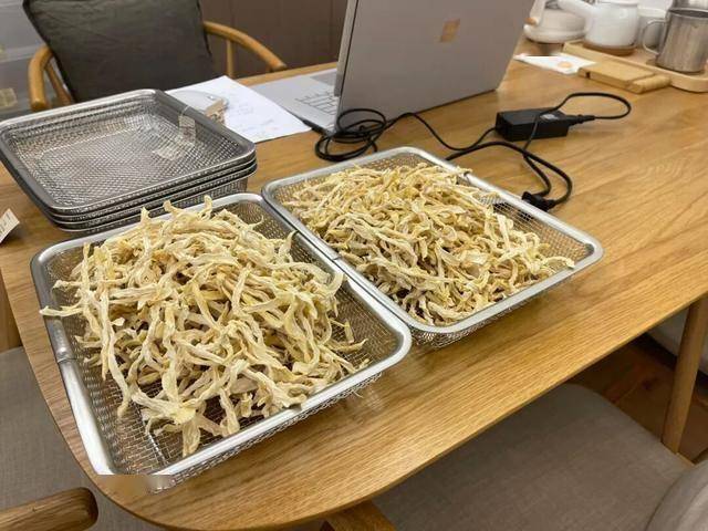 差不多12个小时后,就能明显看到萝卜缩水了,像我家这个烘了3天,已经完全干透了。