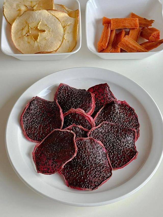 猕猴桃烤干差不多要2~3天的时间,苹果烤干一夜就可以了,可以直接吃,也可以用来泡水,再也不担心水果放坏了。