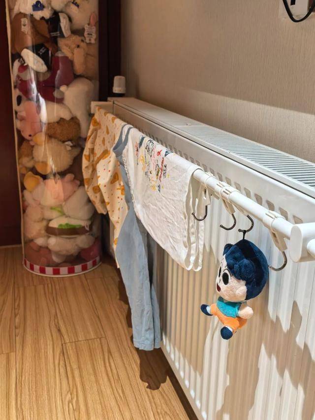 室外没太阳,衣服晒不干?完全不存在,只需要给暖气片配一个挂衣神器,昨晚洗的衣服,第二天就干得透透的。