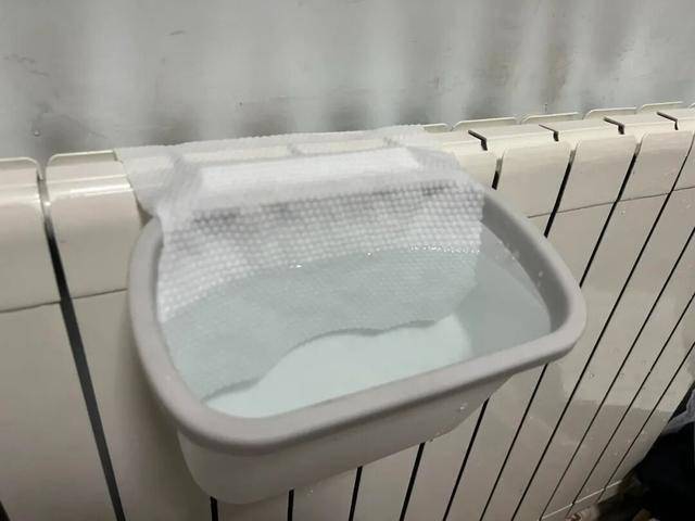 后来把我的桌边垃圾桶挂到暖气片上,倒上水后再搭一块洗脸巾,差不多可以提升房间20%的湿度,比加湿器好用多了,每天只需要换一块洗脸巾就行了。