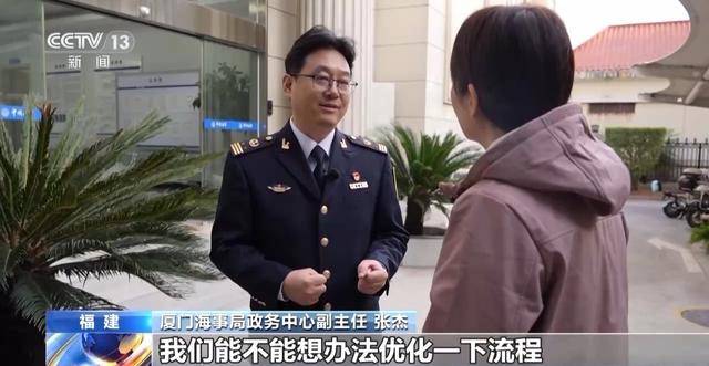 厦门海事局政务中心副主任 张杰:时效也是提升了非常多,把28天压缩到8天,然后现在甚至可以当天办结。2022年登记船舶注册载重吨是445万吨,现在已经达到了580万吨,增长了30%。可以说不停运办证给我们港口注入了新动能,吸引了更多的航运要素向我们厦门聚集。