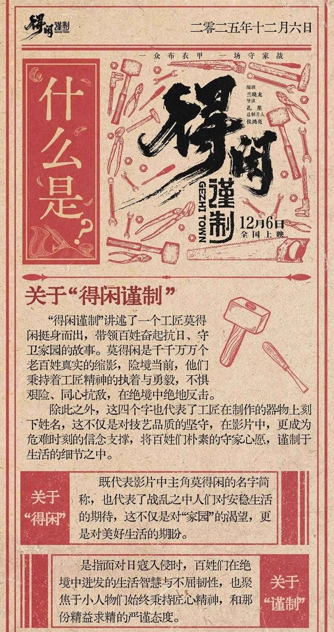 由正午阳光、猫眼、中影出品,侯鸿亮担任总制片人,孔笙执导,兰晓龙编剧,肖战、彭昱畅、周依然主演的抗战题材电影《得闲谨制》,已于12月6日(上周六)正式公映。
