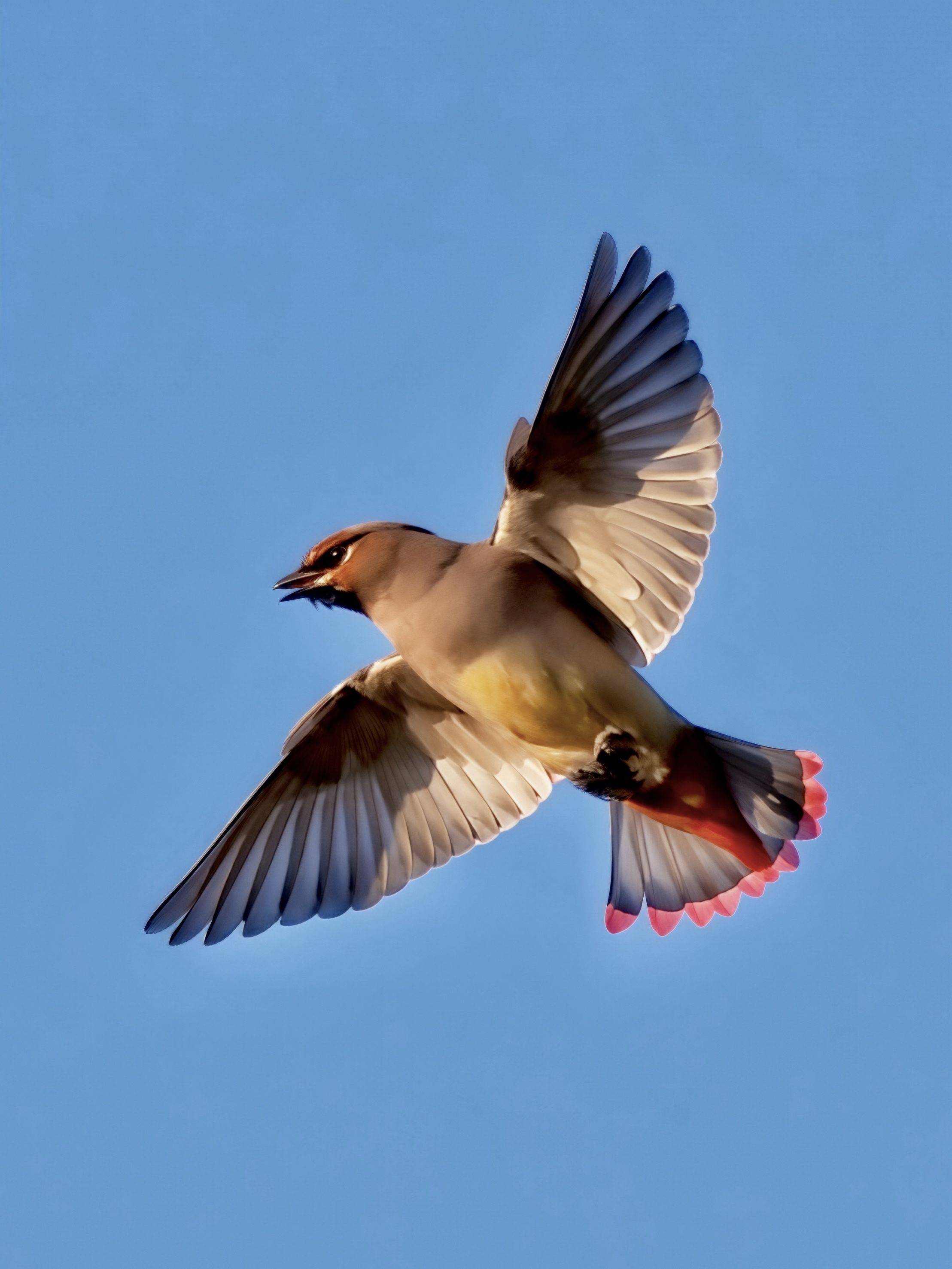 两只小太平鸟疑似受惊后撞上玻璃幕墙