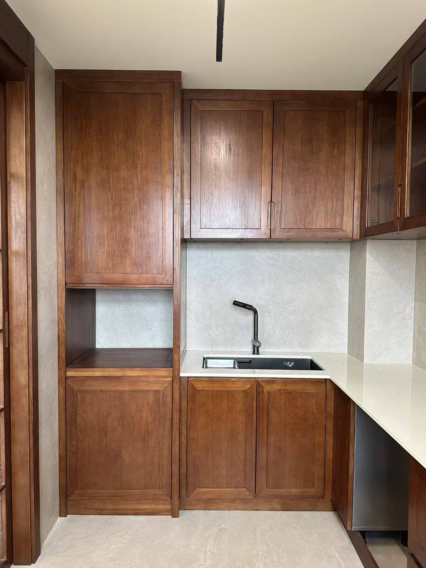 从材质上看,实木材质自然环保,给人一种回归自然的感觉。它选用天然木材,不含有害化学物质,对人体健康没有危害,尤其适合有老人和小孩的家庭。而且,实木的纹理丰富多样,每一块木材都有其独特的纹路,使得橱柜更具个性和艺术感。