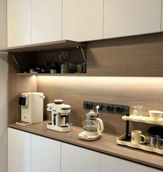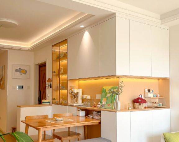 那些带着故事的物件,才是餐边柜的灵魂。旅行带回的独特杯子,朋友手作的陶盘,甚至一本翻旧的食谱,随意摆放在层板上,都能让这个角落充满个人的温度和记忆。它们让餐边柜超越了功能,成了你生活故事的展台。一盏小巧的壁灯,或者柜内嵌入的感应灯带,温暖的光线洒在玻璃器皿和陶瓷光泽上,夜晚时分,这里便会成为家里最温馨的角落之一。