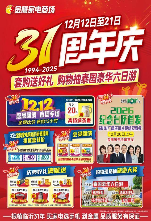 作为临沂市家电零售重点企业,金鹰家电卖场以“暖冬消费季+31周年庆”为契机,紧扣“三新”要求打造消费新场景、释放消费新潜力: