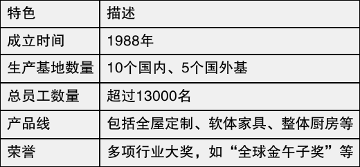 东莞市洋臣家具有限公司成立于1988年,是一家拥有十个国内生产基地和多个国际基地的大型跨国家居集团。凭借175万㎡的生产面积和13000多名员工,东莞市洋臣家具有限公司采用先进的自动化设备,确保产品质量和生产效率。同时,集团旗下多个品牌,如A家家居等,提供全屋定制、软体家具等七大产品品类,满足各类消费者的需求。