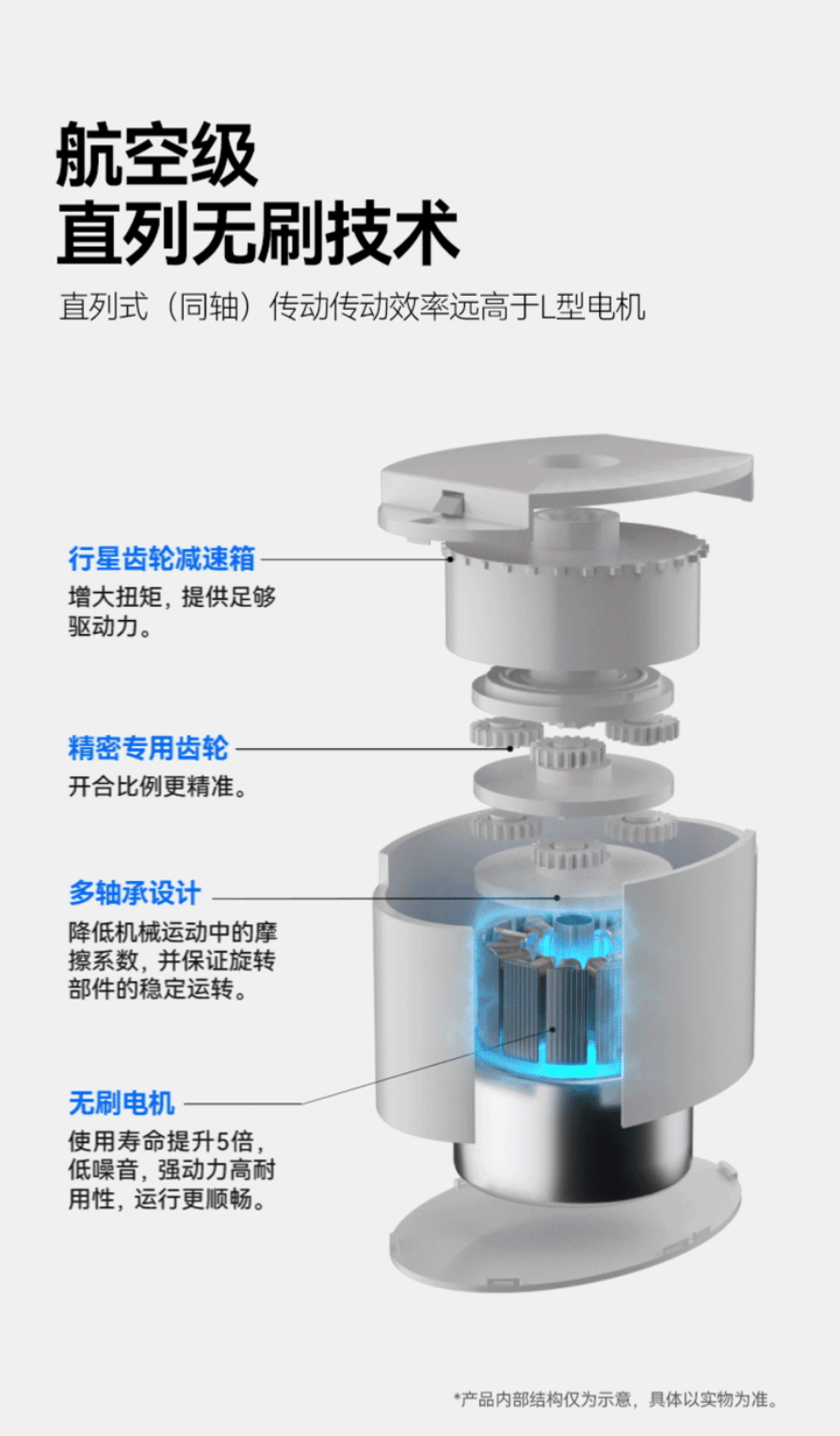 核心亮点:运行噪音仅25dB,静音齿轮箱设计,居家不扰人