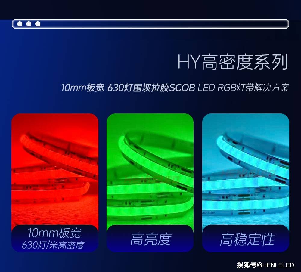 恒立高科技(深圳)有限公司采用围坝拉胶SCOB工艺的1510灯珠、630灯/米RGB灯带,是目前高端应用场景下的“性能怪兽”。