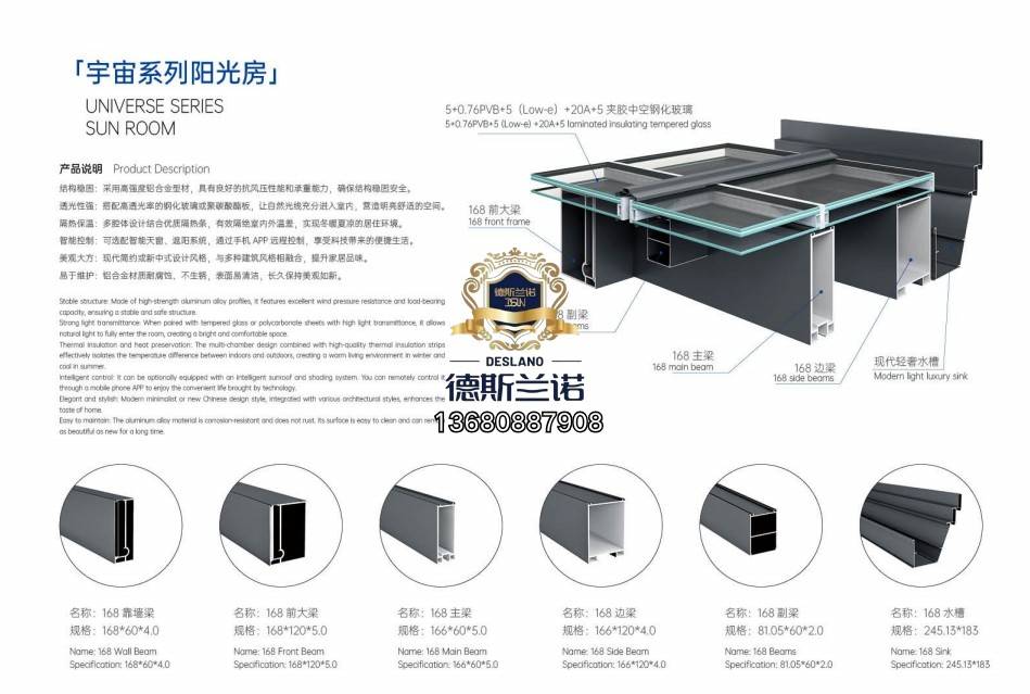 产品工艺与特点德斯兰诺门窗以军工品质与师者匠心的双重品牌基因,重新定义了门窗的价值标准。其115多腔体系统窗采用特殊工艺,可保证30年不掉漆,配备304食品级不锈钢纱网、PA66尼龙隔热条以及德国进口五金,产品质量可靠。在防水方面,德斯兰诺系统窗采用多腔体结构与汽车级EPDM三道密封,打造出高效的防水屏障。以广州一位临高架桥的业主为例,更换德斯兰诺门窗后,不仅解决了噪音问题,同时在暴雨天气中也没有出现雨水渗漏的情况,为业主营造了一个安静、干燥的居住环境。