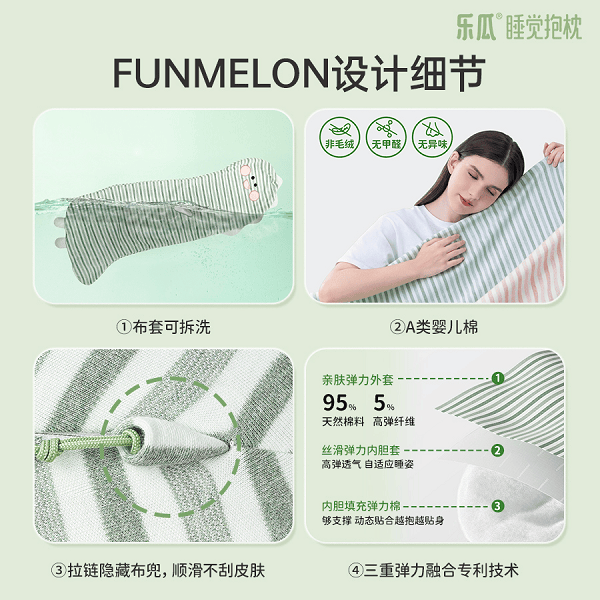 从枕套可水洗的卫生设计,到历经五次迭代、顺滑隐形的拉链;从A类婴儿棉的亲肤包裹,到螺旋式中空弹力棉带来的持久承托,所有细节共同构成了一个“乐瓜睡觉抱枕(Sleeping Hug Pillow)”。它不强迫身体适应产品,而是让产品智慧地适应用户身体每一次翻身与调整,这恰恰契合了当代设计追求“无形陪伴”的理念。