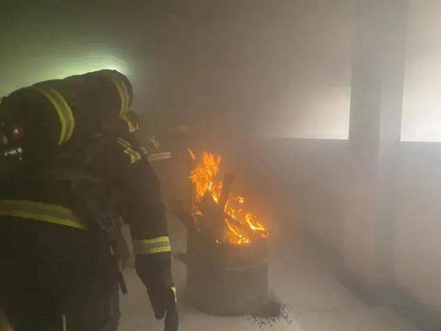 上午使用的是木头或橡胶点火实验,这些可燃物放置在门口,橙柿互动记者在一处已经关闭的防火门内侧。