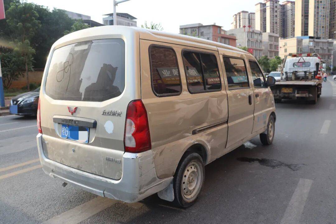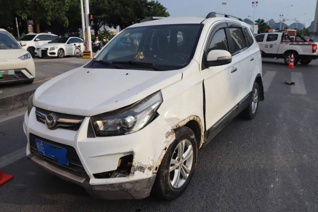 9月6日,来宾市武宣县公安局接到报警称,在该县武政路路口处,一辆白色小客车与一辆小型面包车发生碰撞,致两车受损。